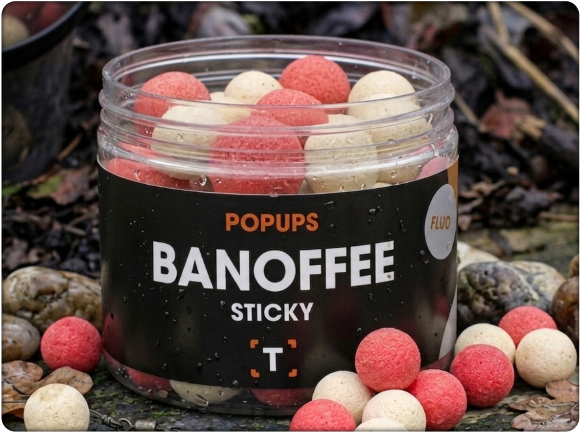 Voor wie het nog niet wist: Banoffee is de ultieme combo van zoete Banaan en romig zachte Toffee. In de culinaire wereld een combinatie van formaat, in de visserij al lang en breed bewezen met onze Banoffee Tijgernoten Hookbaits. Met de lancering van de Sticky Banoffee-range hebben wij, geheel volgens eigen uniek recept, deze klassieker vertaald naar een complete range! Zo heeft iedere karpervisser een nieuwe zoete knaller in zijn arsenaal die gegarandeed voor actie op de stek zorgt!